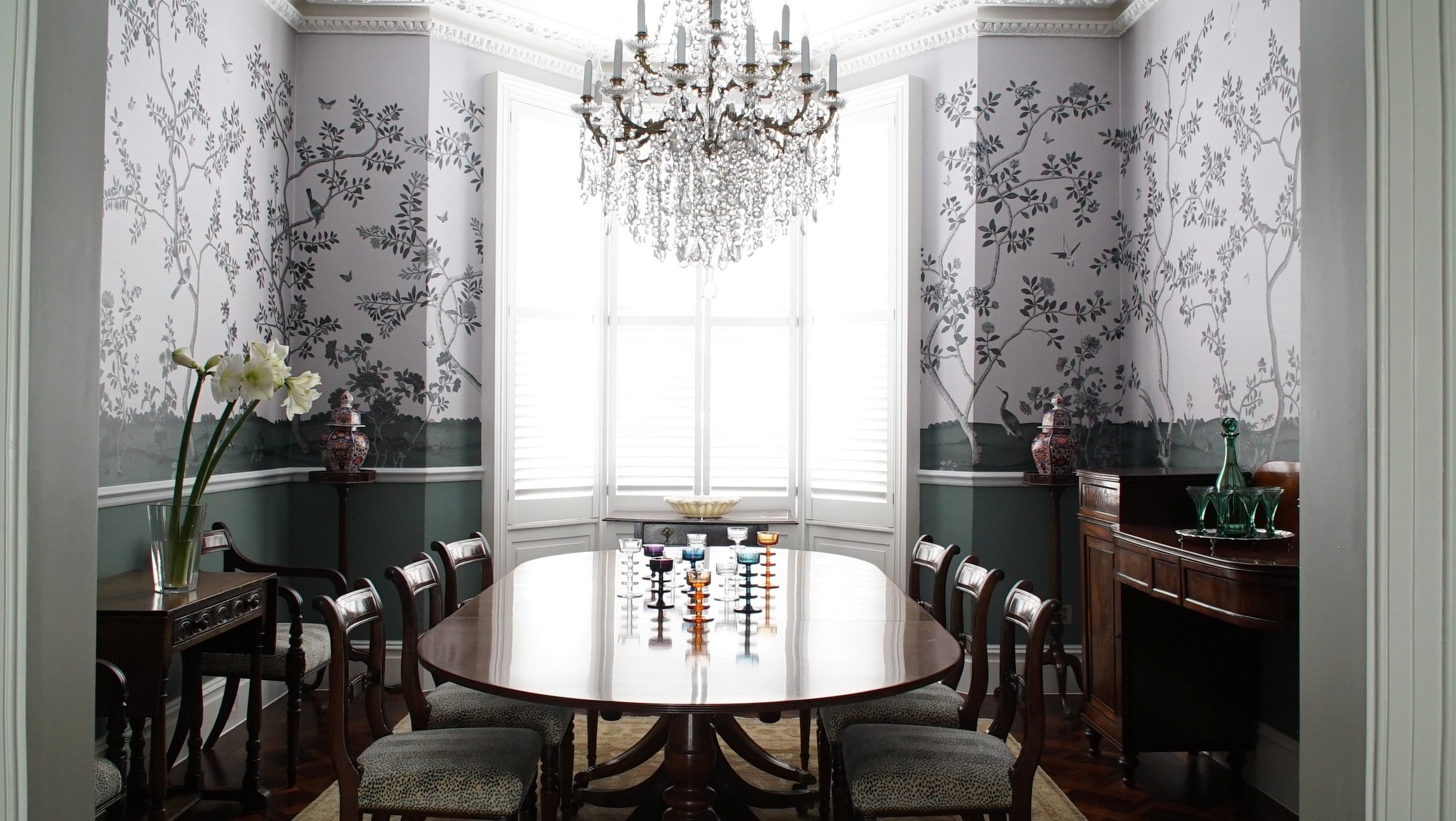 Sadly the original covings had to be replaced throughout, but the crispness of the new plaster moulds draws the eye up to the grand, tall ceilings. This luxury of ceiling height allowed for a statement pendant light or two and in the bedroom, the scale of the decorative wallpaper doesn’t overpower.